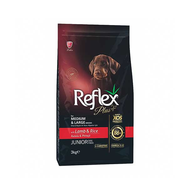 غذای خشک سگ جونیور رفلکس پلاس طعم گوشت بره (Reflex Plus Junior Lamb And Rice ) وزن 15 کیلوگرم مناسب برای تمام نژادهای متوسط و بزرگ از 2 ماه تا 24 ماه و با فرمول تعادل شده حاوی تمام المان های مغذی رشد ارائه شده است. همانطور که گفته شد این غذای خشک ویژه سگ های جوان نژاد متوسط و بزرگ و به اصطلاح مدیوم جونیور و مکسی جونیور می باشد.