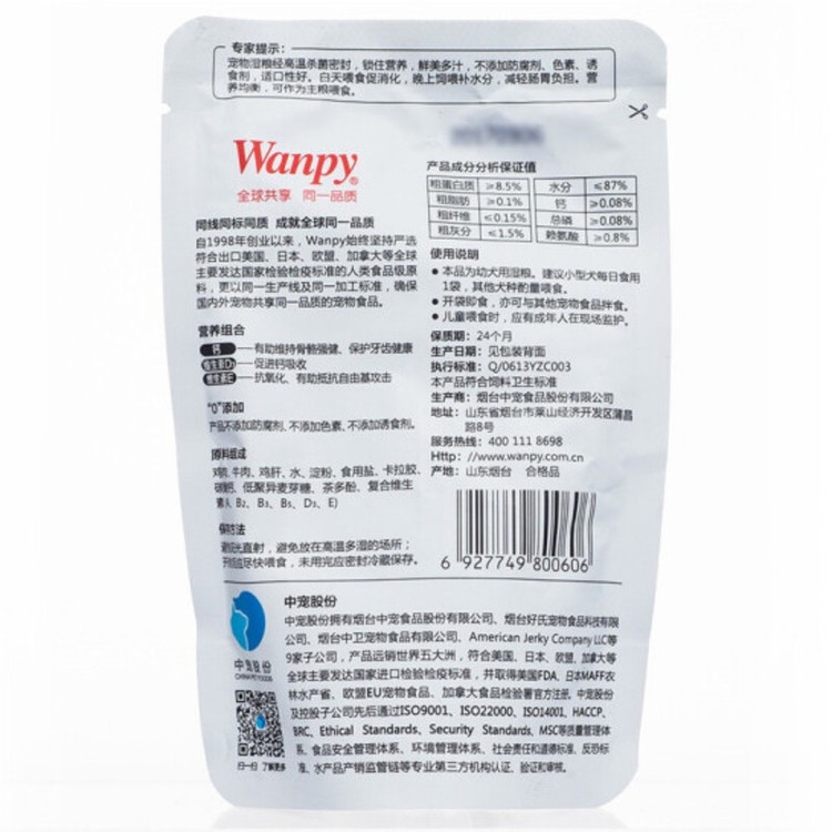 پوچ توله سگ ونپی با طعم مرغ و گوشت گاو وزن 80 گرم Wanpy Chicken & Beef