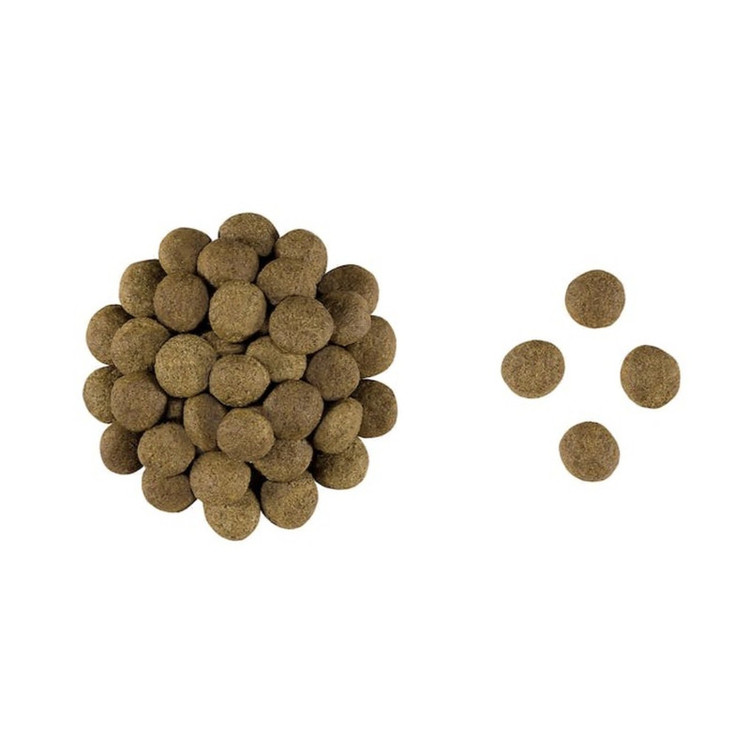 برنج، پودر مرغ خشک، ذرت، چربی حیوانی، پروتئین حیوانی هیدرولیز شده، مخمر، تخم مرغ خشک، تفاله چغندر خشک، روغن سویا، مواد معدنی، الیاف گیاهی، روغن ماهی، دانه ها و پوسته پسیلیوم (منبع مواد مخاطی)، فروکتولیگوساکاریدها ، هیدرولیز مخمر (منبع مانانولیگوساکاردی)، عصاره گل همیشه بهار (منبع لوتئین)، ویتامینA، ویتامین D3