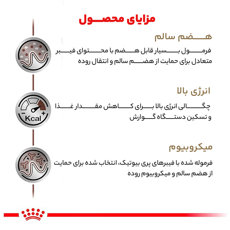 غذای خشک گربه گسترواینتستینال رویال کنین (Royal Canin Gastrointestinal) با طعم مرغ و گوشت به طور خاص برای گربههایی طراحی شده است که مشکلات گوارشی دارند، مانند التهاب معده، اسهال، استفراغ، یا سایر اختلالات دستگاه گوارش. این غذا به بهبود عملکرد دستگاه گوارش و مدیریت مشکلات گوارشی کمک میکند.