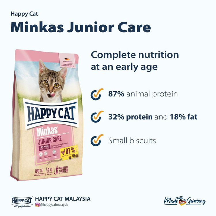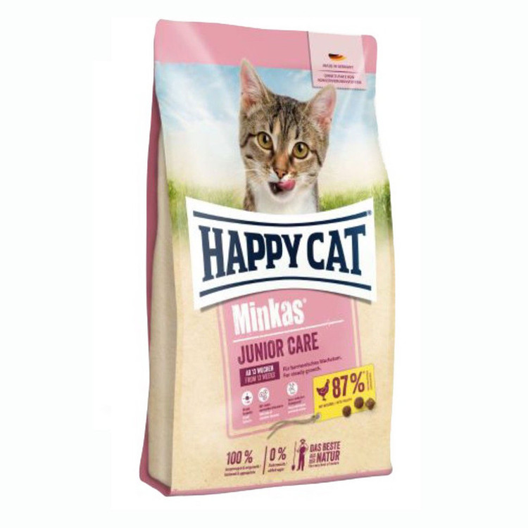 غذای خشک گربه طعم مرغ هپی کت Happy Cat Minkas Junior Care به طور ویژه برای گربههای جوان و در حال رشد طراحی شده است و میتواند به تقویت رشد سالم آنها کمک کند.
