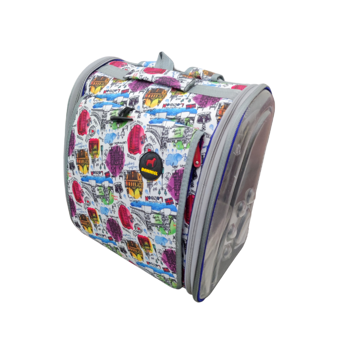 دارای دیواره های طلقی شفاف زیپ دار در دو طرف و جلوی کوله توری میباشد برای تهویه و دید بهتر حیوان