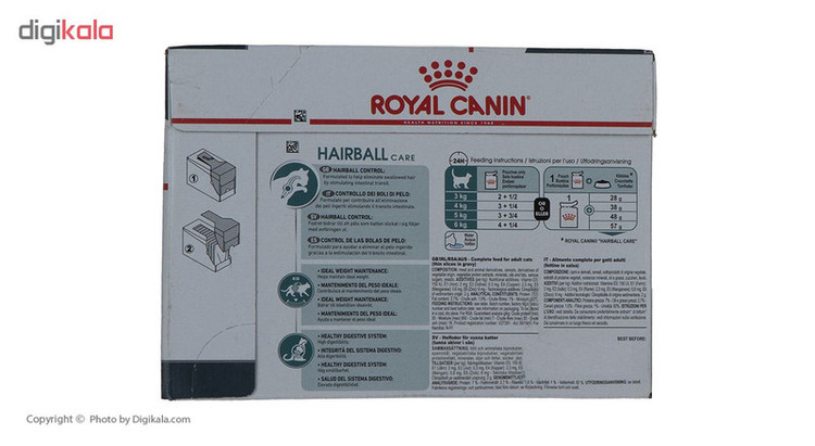 امروزه باتوجه به نگهداری حیوانات در خانه مخصوصا سگ و گربه، وسایل مربوط به سرگرمی و غذاهای مخصوص آنها نیز تولید میشوند. این محصولات میتوانند بسیار مفید واقع شوند. یکی از این محصولات، غذای پوچ گربه «رویال کنین» مدل Hairball است. این محصول همانطور که از نامش پیداست، شمل 12 عدد غذای پوچ گربه به مقدار 85 گرم است. این محصول به گونهای طراحی شده است که دارای شیره گوشت بوده و کمک به حفظ سلامت گربه، کمک به حفظ وزن گربه و کمک به جلوگیری از بلعیدن موی گربه میکند. همچنین این محصول دارای قابلیت هضم بالا نیز است. این محصول به گونهای است که با استفاده از آن میتوانید از بابت تغذیه سگ خود، خیالتان راحت باشد. پیشنهاد ما به شما این است که از این محصول استفاده کرده و از انتخاب خود راضی باشید.