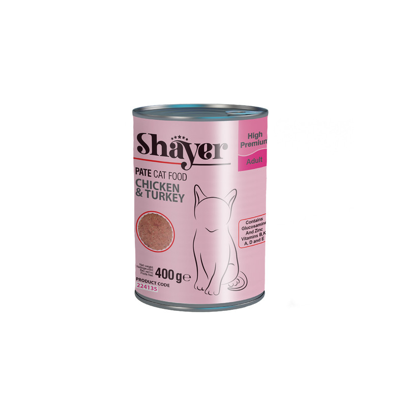 کنسرو غذای گربه شایر با طعم مرغ و بوقلمون وزن 400 گرم _ Shayer Pate Cat Food Chicken & Turkey