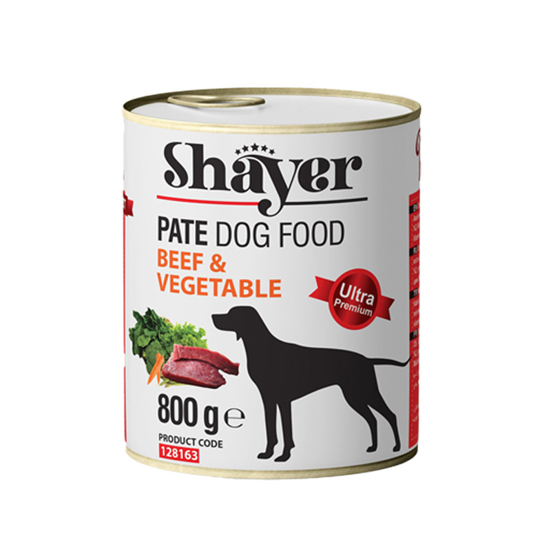 کنسرو غذای سگ با طعم گوشت و سبزیجات شایر وزن 800 گرم _ Shayer Pate Dog Food With Beef & Vegetable