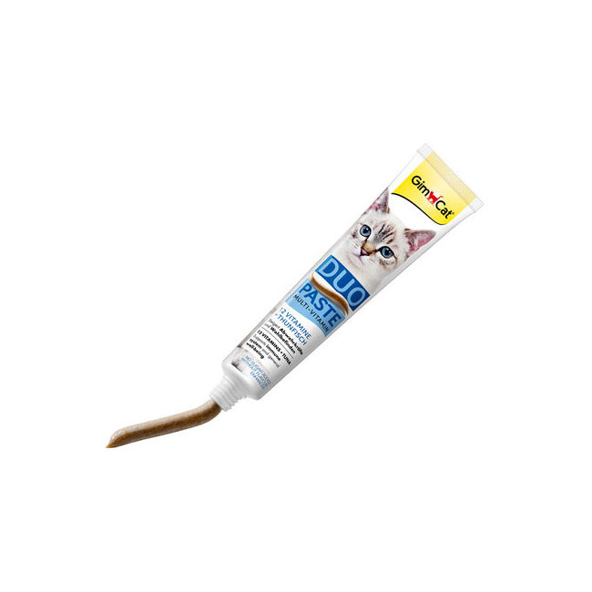 مصرف غذای گربه به تنهایی کافی نیست و گربه شما نیاز دارد از خمیر مولتی ویتامینی مناسب در رژیم غذایی خود بهرهمند گردد. خمیر مولتی ویتامین دوقلوی آلمانی برند جیم کت با طعم ماهی تن و وزن 50 گرمی حاوی 12 نوع ویتامین بوده و برای تمامی نژادهای گربه در تمامی سنین مناسب میباشد. طعم ماهی تن سبب میشود گربه شما با رغبت بیشتری این مولتی ویتامین را مصرف کند. این خمیر موجب بهبود سیستم ایمنی بدن گربه شده و از ابتلا به بسیاری از بیماریها جلوگیری میکند. این محصول حاوی هیچ گونه مواد و افزودنی های شیمیایی، طعم دهنده های مصنوعی، نمک، شکر و گلوتن نمی باشد. شیوه استفاده از این خمیر به این گونه است که روزانه به مقدار 3 گرم یا 6 سانتی متر خمیر (منظور خمیری است که از تیوپ بیرون میآید) را به صورت مستقیم از لوله تیوپ یا به صورت مخلوط شده با غذای گربه به وی بدهید. لازم به ذکر است پیش از باز شدن این محصول میتوان آن را در دمای اتاق نگهداری نمود اما پس از باز شدن آن لازم است در محیط خنک نگهداری شود.