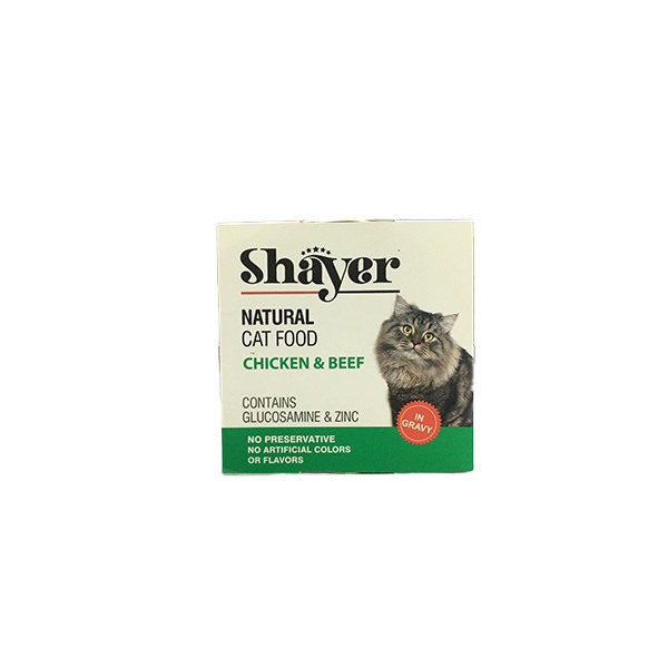 کنسرو غذای گربه با طعم مرغ و گوشت گاو شایر وزن 110 گرم _ Shayer Natural With Chicken & Beef