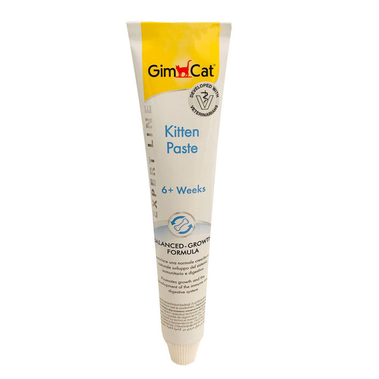 خمیر بچه گربه جیم کت GimCat Kitten Paste مکمل مغذی مخصوص بچهگربهها، غنی از DHA، تائورین و کلسیم برای رشد سالم استخوانها، مغز و بینایی کیتنهاست.