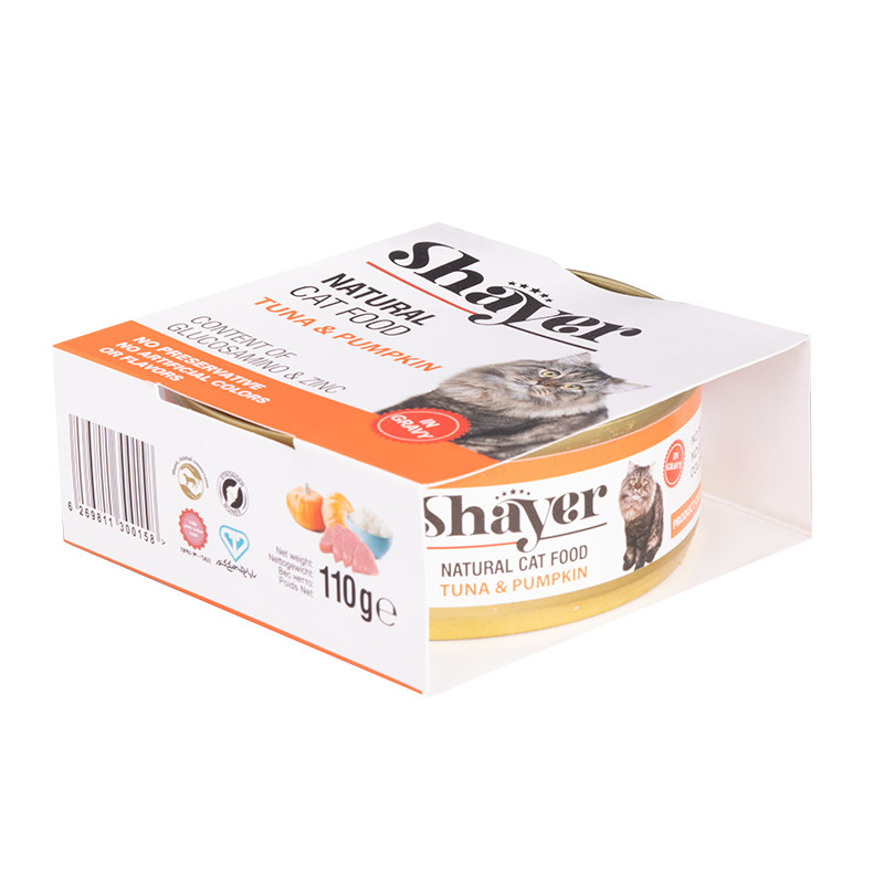 کنسرو غذای گربه شایر با طعم ماهی تن و کدو حلوایی وزن 110 گرم _ Shayer Natural With Tuna & Pumpkin